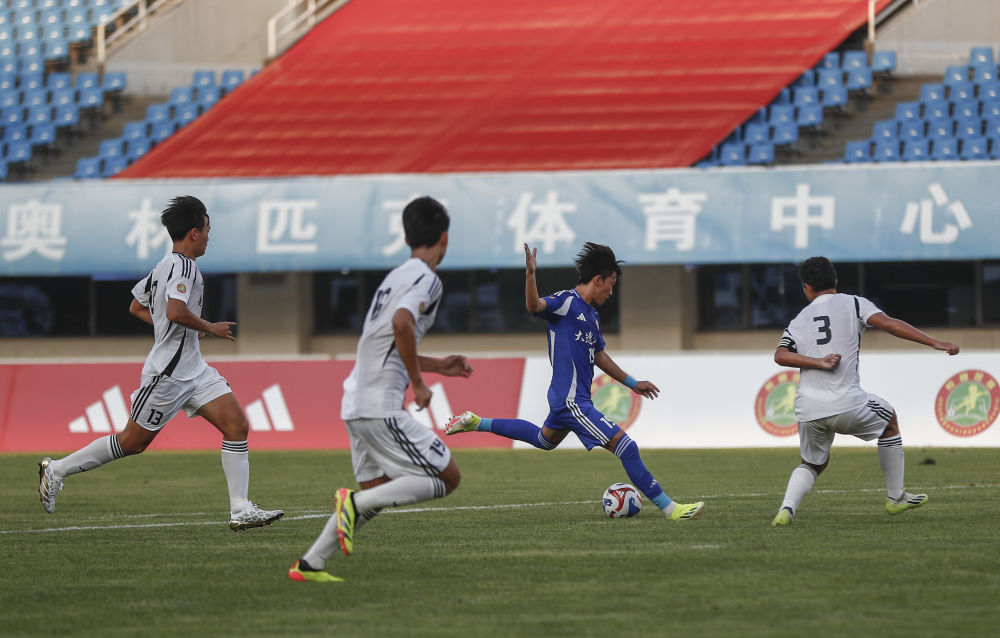 2024年8月30日,大連市第八中學(xué)隊球員張禹(右二)打入第一粒進(jìn)球。當(dāng)日,2023-2024全國青少年校園足球聯(lián)賽高中男子組決賽在北京奧體中心體育場舉行,大連市第八中學(xué)隊2比0戰(zhàn)勝南昌市第二中學(xué)隊,奪得冠軍。新華社記者 胡星宇 攝