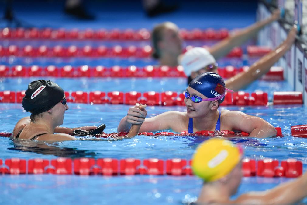 “我感覺(jué)挺驚喜的,我沒(méi)有想到會(huì)超過(guò)她(萊德茨基),這次前面按照自己的節(jié)奏來(lái)游,等最后100米的時(shí)候,我看跟她的差距不是很大,我想盡力去追一追。”李冰潔賽后說(shuō),“雖然可能她目前的競(jìng)技水平不是在最好,但是我覺(jué)得這次(勝利)對(duì)我來(lái)說(shuō)很重要,意義非凡!”