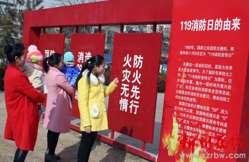 2月25日,原平市民正在119消防文化主題公園觀看、了解、學(xué)習(xí)消防安全與火災(zāi)防范知識(shí)。為進(jìn)一步推進(jìn)社會(huì)化消防宣傳工作,原平市為廣大市民打造了一個(gè)寓教于樂(lè)、主題鮮明的消防宣傳教育平臺(tái)。整個(gè)公園具有鮮明的消防主題特色,集觀賞性、教育性為一體,可使廣大市民在休閑娛樂(lè)中,了解如何防范、應(yīng)對(duì)火災(zāi)發(fā)生,以及如何進(jìn)行火場(chǎng)逃生等基本常識(shí)。(趙春曉 攝)