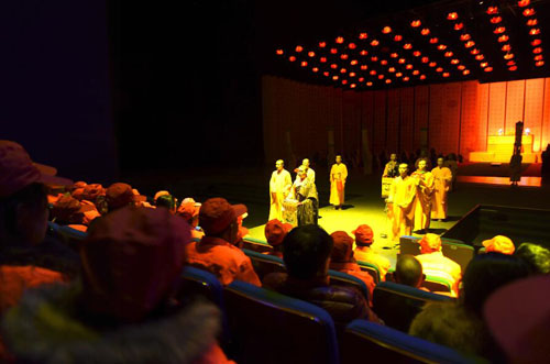 “第一次觀看,感到很震撼,心里有一種釋放的感覺(jué)!非常感謝!”年近60歲的環(huán)衛(wèi)工楊師傅激動(dòng)地說(shuō)。獨(dú)特、豐富的舞臺(tái)語(yǔ)言和奇幻無(wú)比的聲光電藝術(shù),帶領(lǐng)他們回顧、展望人生中的點(diǎn)滴片段,引起共鳴。與城市環(huán)衛(wèi)工人一樣,無(wú)論春夏秋冬每天堅(jiān)守崗位10余個(gè)小時(shí)的五臺(tái)山環(huán)衛(wèi)工人,大多年歲較大。他們?nèi)諒?fù)一日,年復(fù)一年,用手中的大掃帚在風(fēng)霜雨雪中與垃圾和塵埃做著不懈的“斗爭(zhēng)”,守護(hù)著景區(qū)通往各個(gè)景點(diǎn)的條條道路,是文明衛(wèi)生景區(qū)最可愛(ài)的人之一。90分鐘,很短暫,但大家的心靈得到了一種釋然,一種寬慰,著實(shí)是一種最實(shí)惠的“福利”。