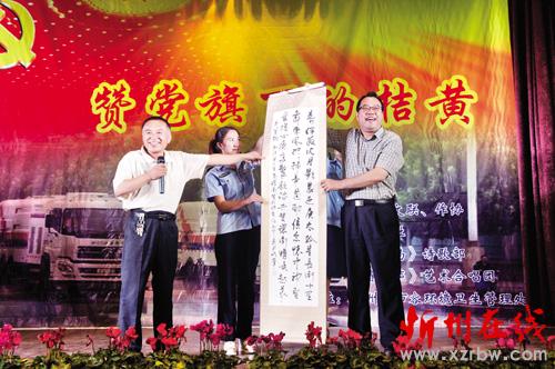 本報(bào)訊 7月3日晚8時(shí),忻府區(qū)文聯(lián)、忻府區(qū)作家協(xié)會(huì)和遺山詩社在忻州市住建局禮堂共同舉辦了一場大型詩歌吟誦演唱會(huì),用詩的語言、歌的韻律抒發(fā)了對(duì)黨的祝福和對(duì)環(huán)衛(wèi)工人的贊美。7月1日是黨的生日,在此之際,他們用詩歌表達(dá)對(duì)黨的熱愛,也表達(dá)對(duì)在黨旗下默默付出的勞動(dòng)者們的敬意。