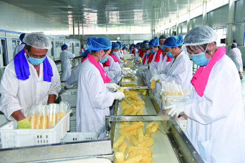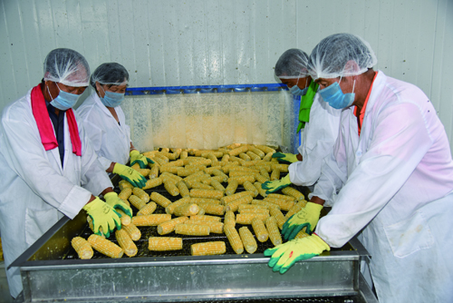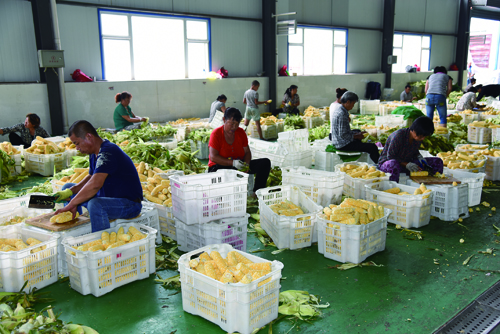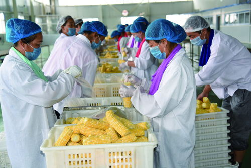加工生產水果玉米的熱烈場面