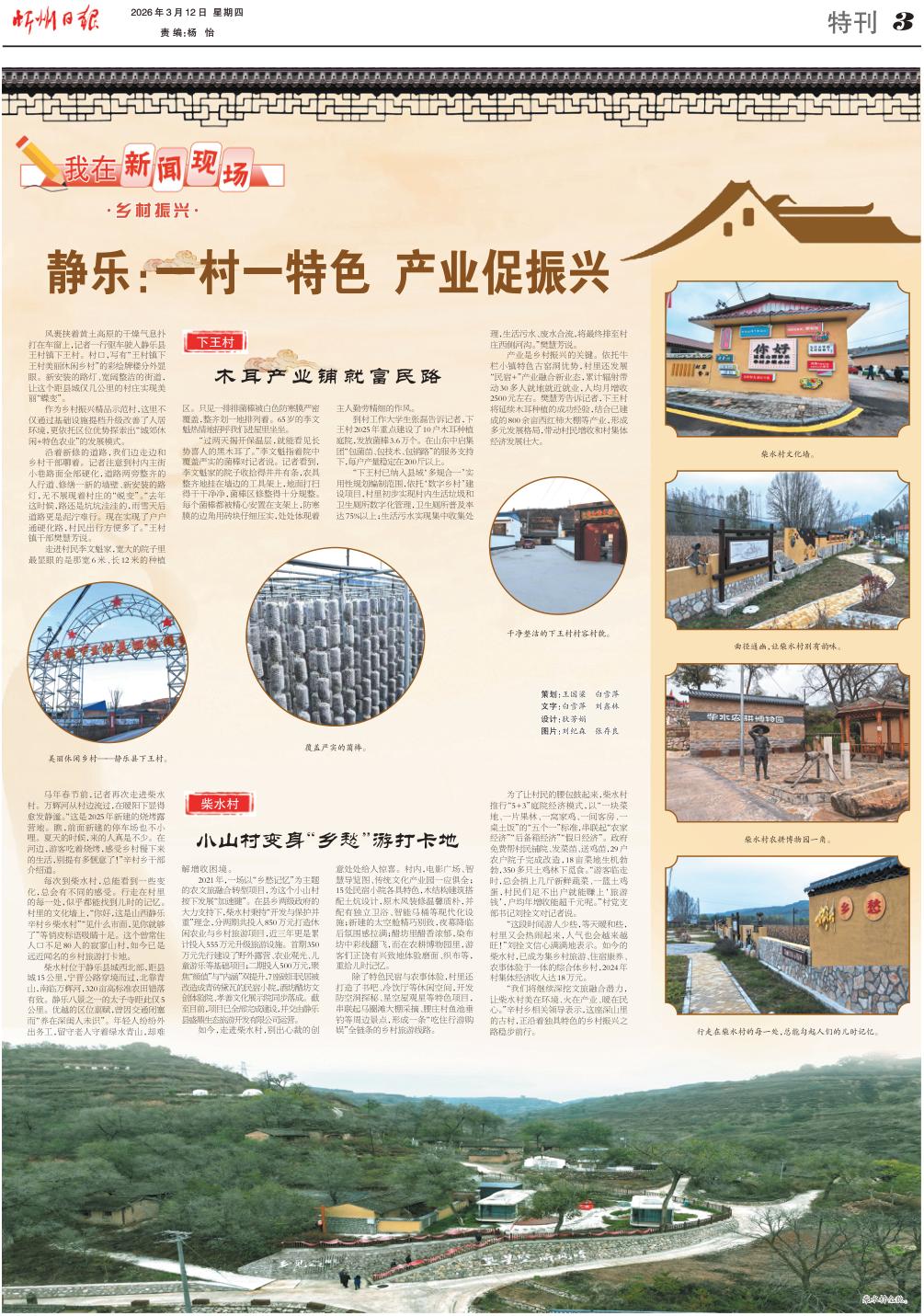 風裹挾著黃土高原的干燥氣息撲打在車窗上,記者一行驅(qū)車駛?cè)腱o樂縣王村鎮(zhèn)下王村。村口,寫有“王村鎮(zhèn)下王村美麗休閑鄉(xiāng)村”的彩繪牌樓分外顯眼。新安裝的路燈、寬闊整潔的街道,讓這個距縣城僅幾公里的村莊實現(xiàn)美麗“蝶變”。
