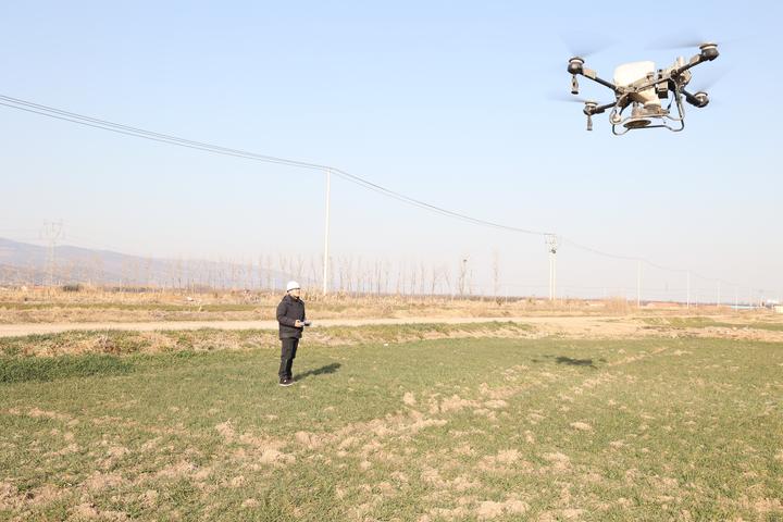 在位于江蘇連云港的云臺(tái)農(nóng)場,高效節(jié)能、操作便捷的植保無人機(jī)騰空而起,成為1.8萬畝小麥春季管護(hù)的得力助手。通過無人機(jī)作業(yè)每1000畝地僅需一名工作人員,兩天便可完成農(nóng)場全部小麥地的施肥。