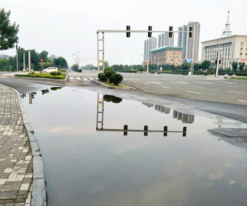 城區(qū)雁門大道與慕山路十字路口東南角,每到下大雨就有較深的積水。望相關(guān)部門及時(shí)進(jìn)行處理。9月1日一網(wǎng)友攝