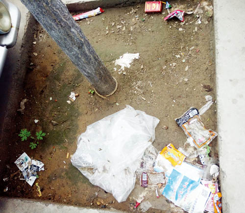 近日,記者在華榮區(qū)發(fā)現(xiàn),路旁的很多樹(shù)坑被當(dāng)成了垃圾桶,人們隨手將果皮紙屑塑料袋扔在了里面,影響市容不說(shuō)也污染了環(huán)境。樹(shù)坑內(nèi)垃圾不但難于清理,而且污水滲入土內(nèi)會(huì)導(dǎo)致樹(shù)木根部和樹(shù)皮底部的腐爛。同時(shí),長(zhǎng)久被油污浸泡的土地會(huì)變成“ 油土”,樹(shù)木無(wú)法正常呼吸,最終導(dǎo)致死亡。馬路兩旁的行道樹(shù)不僅可以?xún)艋諝?、美化市容市貌,在夏天的時(shí)候還能給行人提供天然的蔭涼。希望附近的居民能夠管住自己的手,不要再向樹(shù)坑內(nèi)扔垃圾,養(yǎng)成愛(ài)護(hù)環(huán)境的文明習(xí)慣。實(shí)習(xí)記者 王菲 攝