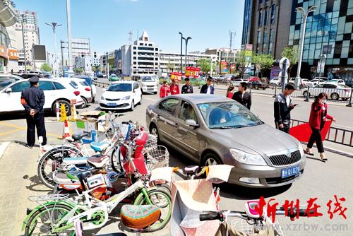 經(jīng)過連續(xù)幾年大干城建年和如火如荼的創(chuàng)衛(wèi)建設,忻州市民欣喜地看到城區(qū)發(fā)生了巨大的變化,路寬了,樹綠了,現(xiàn)代化建筑鱗次櫛比。城市硬件設施的提升,更需要文明軟實力的提升,可是總有一些人,自身素質(zhì)跟不上文明的腳步,譬如近日記者在街頭看到,有人將電動車停放在機動車之間,有人扎堆將自行車電動車無序停放在街道邊,還有的司機在禁停標志前赫然停放車輛,讓城市秩序頓顯零亂之感。圖一為城區(qū)七一路網(wǎng)通公司門前自行車輛亂停亂放;圖二為有人將電動車停放在機動車之間;圖三為一輛轎車在禁停標志前橫跨盲道停放。(魯明強)