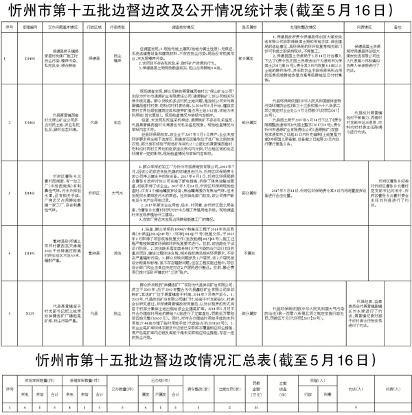 我市高度重視,立即組織查處,截至5月16日,督辦的5件群眾反映問(wèn)題已辦結(jié)。其中,確認(rèn)不屬實(shí)1件;確認(rèn)部分屬實(shí)4件。對(duì)于部分屬實(shí)已辦結(jié)的環(huán)保問(wèn)題,分別采取了相應(yīng)處理措施,共罰款10萬(wàn)元,對(duì)9名相關(guān)責(zé)任人進(jìn)行約談。對(duì)5件群眾反映問(wèn)題調(diào)查處理情況進(jìn)行了信息公開(kāi)。