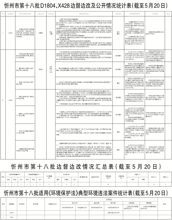 我市高度重視,立即組織查處,截至5月20日,督辦的4件和續(xù)報的2件群眾反映問題已辦結(jié)。其中,確認部分屬實5件;確認不屬實1件。對于部分屬實已辦結(jié)的環(huán)保問題,分別采取了相應(yīng)處理措施,其中罰款39.3萬元,對30名相關(guān)責(zé)任人進行了約談,對7名相關(guān)責(zé)任人進行了黨紀(jì)政紀(jì)處分。對6件群眾反映問題調(diào)查處理情況進行了信息公開。