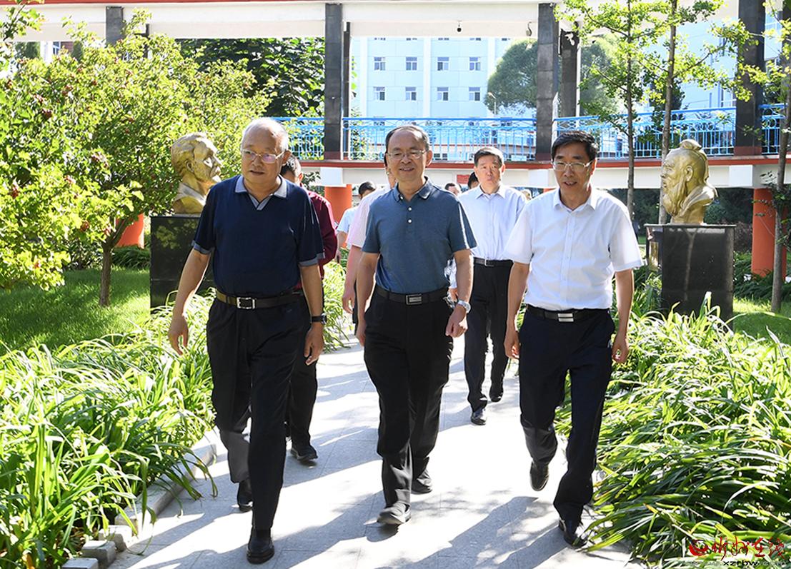 近年來,忻州一中優(yōu)生培養(yǎng)取得階段性成果,綜合辦學(xué)水平大幅提升,高考一本達(dá)線率連年在85%以上,二本達(dá)線率逼近百分之百,教育質(zhì)量享譽(yù)三晉,教學(xué)成績位列全省第一方陣,這些都離不開該校全體教師的辛勤付出。鄭連生一行詳細(xì)察看了校園環(huán)境,并到數(shù)學(xué)教研室與教師進(jìn)行交流,聽取教育教學(xué)意見,詢問工作生活上的困難。鄭連生指出,百年大計(jì),教育為本;教育大計(jì),教師為本,教師是教育事業(yè)發(fā)展的基礎(chǔ),要高度重視并切實(shí)抓好教師隊(duì)伍建設(shè),不斷提升教師的教學(xué)水平,為教師的工作和生活創(chuàng)造便利條件。各級各部門要始終堅(jiān)持教育優(yōu)先發(fā)展戰(zhàn)略,加大財政投入,加強(qiáng)政策支持,全面優(yōu)化教育發(fā)展環(huán)境,推動忻州教育水平再上新臺階,為我市經(jīng)濟(jì)社會發(fā)展培養(yǎng)更多人才。