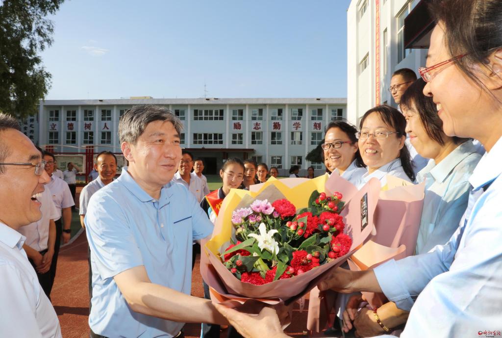 每到一處,朱曉東都向教師們致以節(jié)日問候。長征小學(xué)西校區(qū)是一所高標(biāo)準(zhǔn)規(guī)劃、高水平建設(shè)的新建學(xué)校,今年秋季學(xué)期投入使用。朱曉東察看電子圖書閱覽等教學(xué)新設(shè)施,了解學(xué)校開設(shè)的書法、歌唱、手工、足球、乒乓球、跆拳道、機(jī)器人組裝等特色教育課程,隨機(jī)檢查學(xué)生飲用水機(jī)具,向從基層選拔聘用的優(yōu)秀教師代表贈送書籍,勉勵大家珍惜崗位,肩負(fù)起時代賦予的重任,全心全意培養(yǎng)好人才。具有40多年歷史的忻州六中辦學(xué)底蘊(yùn)厚重,近年來與時俱進(jìn)提升教學(xué)能力。朱曉東實(shí)地了解學(xué)校發(fā)展情況后,一一為教師代表獻(xiàn)上鮮花,感謝大家辛勤付出,希望學(xué)校越辦越好,讓孩子們在學(xué)校有更多收獲。忻州高級中學(xué)教學(xué)設(shè)施先進(jìn),教師隊(duì)伍素質(zhì)高、經(jīng)驗(yàn)豐富,今年學(xué)校畢業(yè)班高考再次取得好成績。朱曉東詳細(xì)了解學(xué)校歷史和往屆學(xué)生成就,鼓勵教師們放長眼光,對照更高標(biāo)準(zhǔn)繼續(xù)努力,為忻州增光添彩。