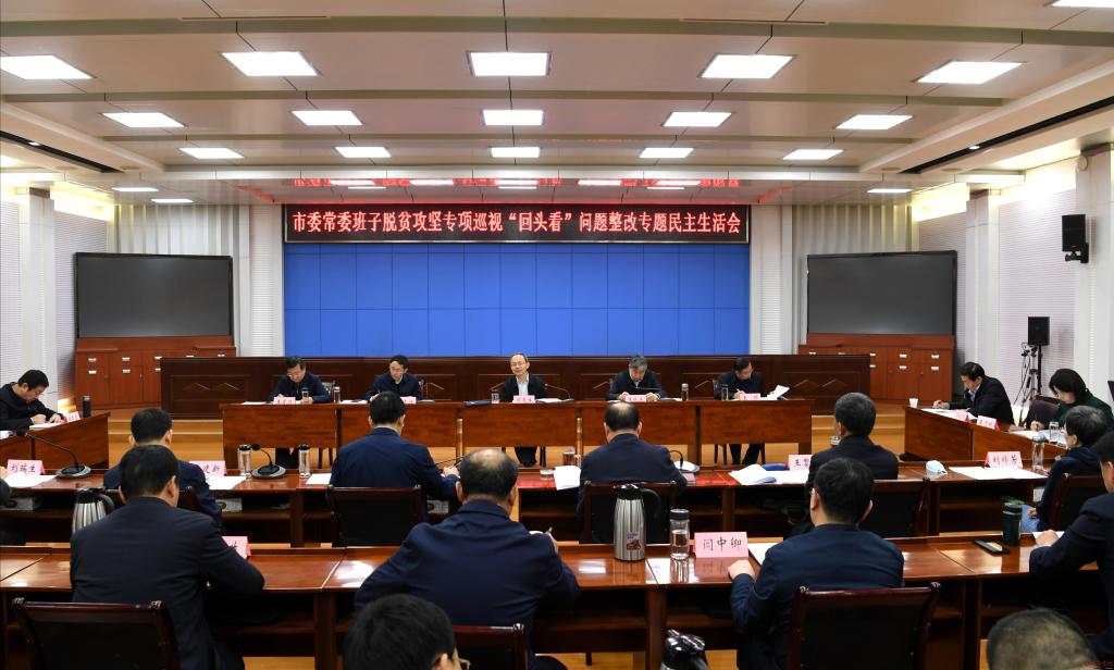 市委常委班子脫貧攻堅(jiān)專(zhuān)項(xiàng)巡視“回頭看”問(wèn)題整改專(zhuān)題民主生活會(huì)會(huì)場(chǎng)。劉紀(jì)森 攝