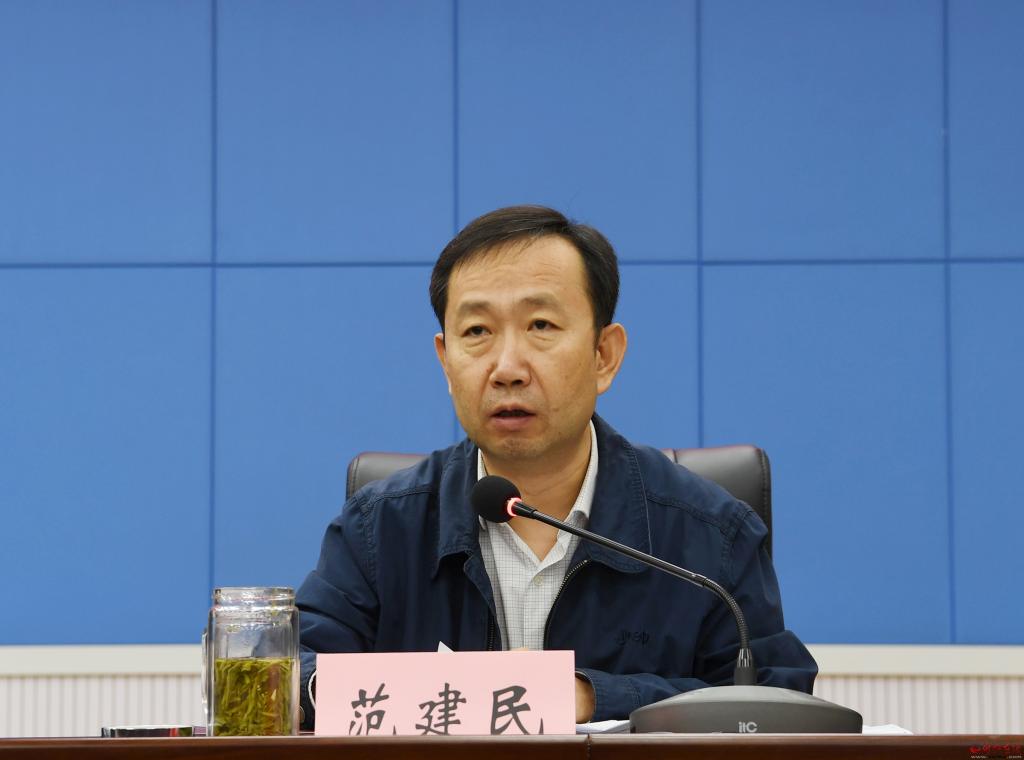 范建民傳達全省補考進位工作調度會議精神,通報今年補考進位工作方案和相關任務分解情況。劉紀森 攝