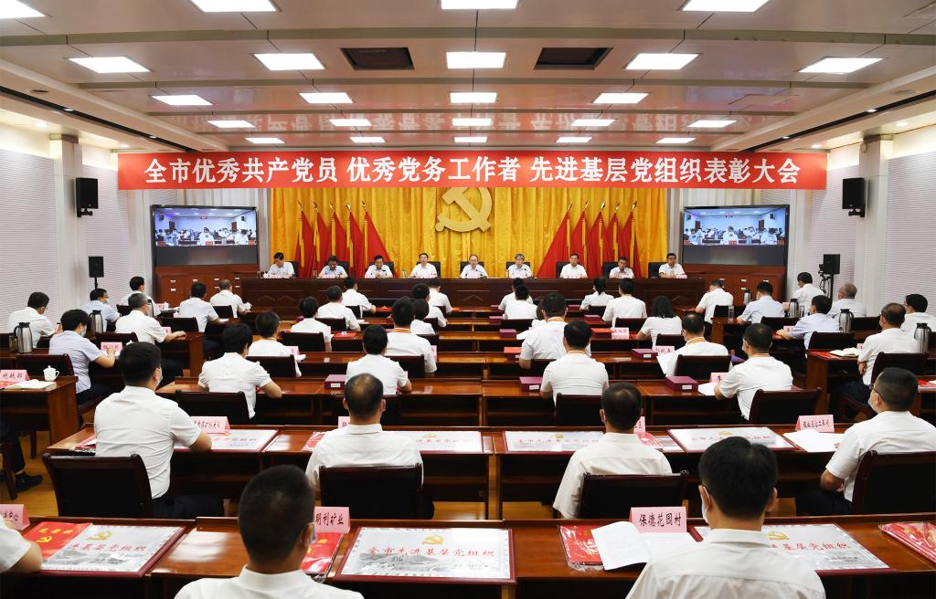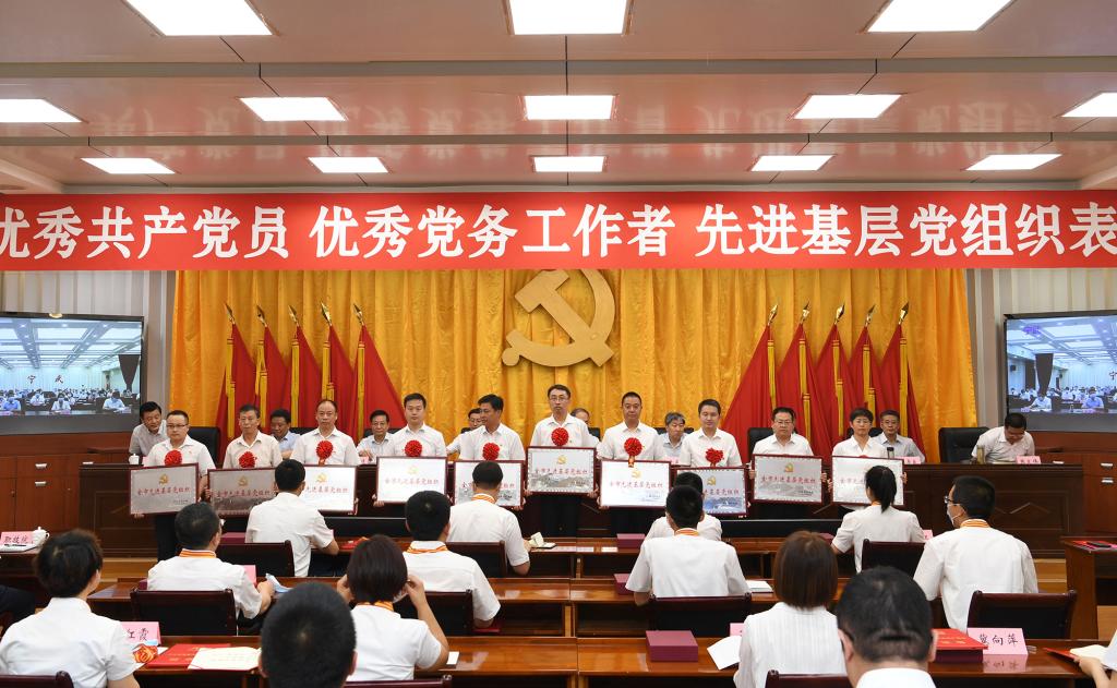 上午8時(shí)30分,大會正式開始,全體起立,奏唱國歌。來自全市各行各業(yè)、在工作中取得優(yōu)異成績的99名共產(chǎn)黨員、100名黨務(wù)工作者和100個基層黨組織,分別被授予“全市優(yōu)秀共產(chǎn)黨員”“全市優(yōu)秀黨務(wù)工作者”“全市先進(jìn)基層黨組織”榮譽(yù)稱號。受到表彰的優(yōu)秀個人和先進(jìn)集體代表先后上臺領(lǐng)獎,會場響起熱烈掌聲。