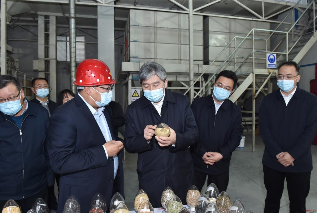 農(nóng)用物資儲(chǔ)備關(guān)系春耕備耕開展。在五臺(tái)縣山西嘉瑞種業(yè)有限公司、定襄縣鑫豐盛農(nóng)業(yè)科技有限公司,朱曉東實(shí)地察看并詳細(xì)了解化肥、農(nóng)藥、籽種等物資儲(chǔ)備情況,詳細(xì)了解籽種種植、加工、生產(chǎn)情況,聽取大豆玉米帶狀復(fù)合種植實(shí)施技術(shù)介紹并察看相關(guān)機(jī)械設(shè)備。朱曉東指出,種子是農(nóng)業(yè)的“芯片”,忻州雜糧種子資源豐富,要以市場需求為導(dǎo)向,堅(jiān)持育種引種并重、良種良法配套、農(nóng)機(jī)農(nóng)藝融合,聚焦主要品種、關(guān)鍵環(huán)節(jié),匯聚資源、集中攻關(guān),助推農(nóng)業(yè)種業(yè)向“特”“優(yōu)”方向發(fā)展,確保農(nóng)業(yè)穩(wěn)產(chǎn)保供、農(nóng)民穩(wěn)步增收、農(nóng)村穩(wěn)定和諧。