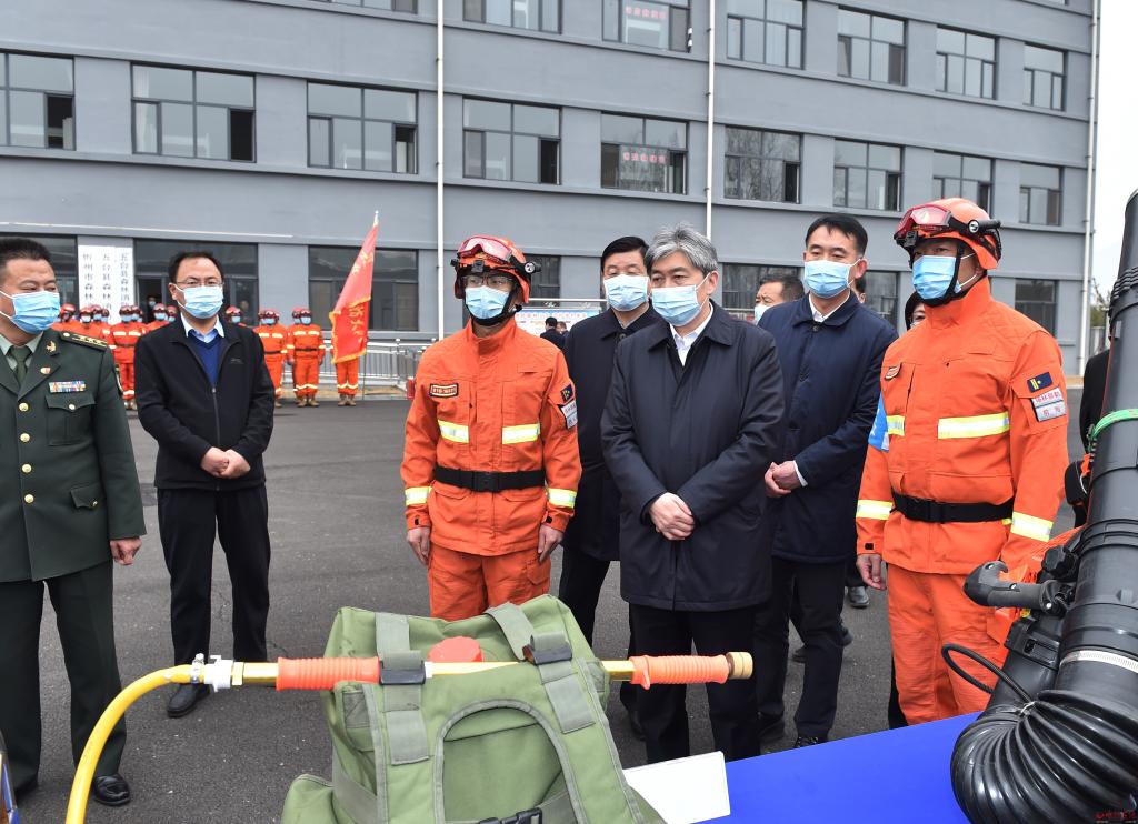 當(dāng)前已經(jīng)進(jìn)入森林防火特險(xiǎn)期,在內(nèi)蒙古森林消防總隊(duì)指戰(zhàn)員駐防五臺(tái)縣東雷鄉(xiāng)應(yīng)急救援訓(xùn)練基地,朱曉東專程慰問指戰(zhàn)員并檢查應(yīng)急物資儲(chǔ)備情況。他希望森防總隊(duì)保持高度臨戰(zhàn)狀態(tài),發(fā)揮專業(yè)護(hù)林滅火優(yōu)勢,持續(xù)強(qiáng)化應(yīng)急演練,結(jié)合五臺(tái)地形氣候?qū)嶋H,以實(shí)戰(zhàn)化演練為導(dǎo)向,完善應(yīng)急預(yù)案,練就過硬本領(lǐng);同時(shí)要發(fā)揮所長,把好經(jīng)驗(yàn)好辦法傳授給地方應(yīng)急隊(duì)伍,幫助地方打造有生力量。市縣相關(guān)部門要全方位服務(wù)保障到位、學(xué)習(xí)借鑒到位,通力合作堅(jiān)決打贏護(hù)林防火攻堅(jiān)戰(zhàn)。在定襄縣林業(yè)局聽取森林防火預(yù)警監(jiān)控系統(tǒng)運(yùn)行情況后,朱曉東指出,護(hù)林防火重在防,要堅(jiān)持人防加技防,把人員力量布設(shè)到位,切實(shí)把好入山進(jìn)林關(guān)卡,強(qiáng)化檢查督導(dǎo),堅(jiān)決禁止火源上山,確保實(shí)現(xiàn)火險(xiǎn)火情“打早打小打了”。