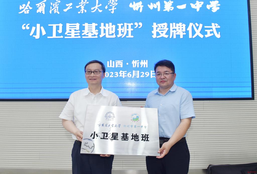 在隨后舉行的授牌儀式上,朱曉東強(qiáng)調(diào),哈爾濱工業(yè)大學(xué)“小衛(wèi)星基地班”為忻州籍學(xué)子提供了一個(gè)接觸哈爾濱工業(yè)大學(xué)、了解哈爾濱工業(yè)大學(xué)、體驗(yàn)哈爾濱工業(yè)大學(xué)的優(yōu)勢(shì)平臺(tái)。希望通過(guò)“小衛(wèi)星基地班”精心設(shè)置的課程活動(dòng),助力更多優(yōu)秀學(xué)子明確定位、開(kāi)拓視野、篤定名校,為忻州乃至全省創(chuàng)新人才培養(yǎng)模式、提高人才培養(yǎng)質(zhì)量、激發(fā)更多教育引領(lǐng)的前瞻思維,讓“小衛(wèi)星”傳遞“大能量”。希望忻州一中能夠以哈爾濱工業(yè)大學(xué)“小衛(wèi)星基地班”授牌儀式為新起點(diǎn)、新標(biāo)桿,提升辦學(xué)育人的更高境界,培養(yǎng)更多具有國(guó)際視野、家國(guó)情懷、創(chuàng)新思維、攻堅(jiān)能力的未來(lái)領(lǐng)軍人才,讓“小衛(wèi)星”塑造“大格局”。希望哈爾濱工業(yè)大學(xué)能夠把創(chuàng)新成果轉(zhuǎn)化到忻州,把創(chuàng)新事業(yè)布局到忻州,把新方案、新模式、新場(chǎng)景、新思路實(shí)踐到忻州,打造市校合作的更多亮點(diǎn),讓“小衛(wèi)星”引領(lǐng)“大發(fā)展”。