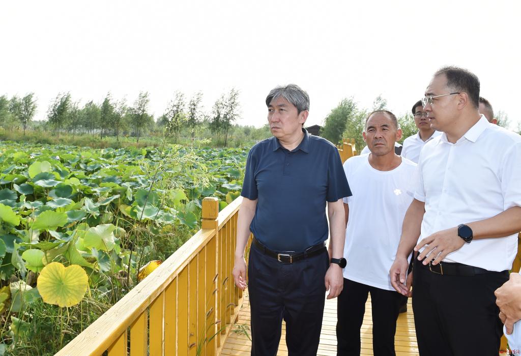 在吉福寺農(nóng)場,朱曉東深入田間地頭實地查看農(nóng)作物長勢,與農(nóng)場負責人面對面交流,仔細詢問農(nóng)產(chǎn)品品種、畝產(chǎn)量、耕種模式、農(nóng)旅融合發(fā)展等情況。他指出,要加快轉(zhuǎn)變發(fā)展觀念,立足農(nóng)場資源稟賦,找準農(nóng)旅融合發(fā)展的切入點,把旅游產(chǎn)業(yè)和農(nóng)業(yè)產(chǎn)業(yè)有機結(jié)合,高標準高品質(zhì)打造有鄉(xiāng)村氣息的參與式、觀光式和體驗式旅游產(chǎn)品。要充分挖掘鹽堿地綜合利用潛力,因地制宜抓好技術(shù)推廣、品種選育等工作,大力探索鹽堿地治理改良的有效方法,深度做好鹽堿地特色農(nóng)業(yè)大文章。