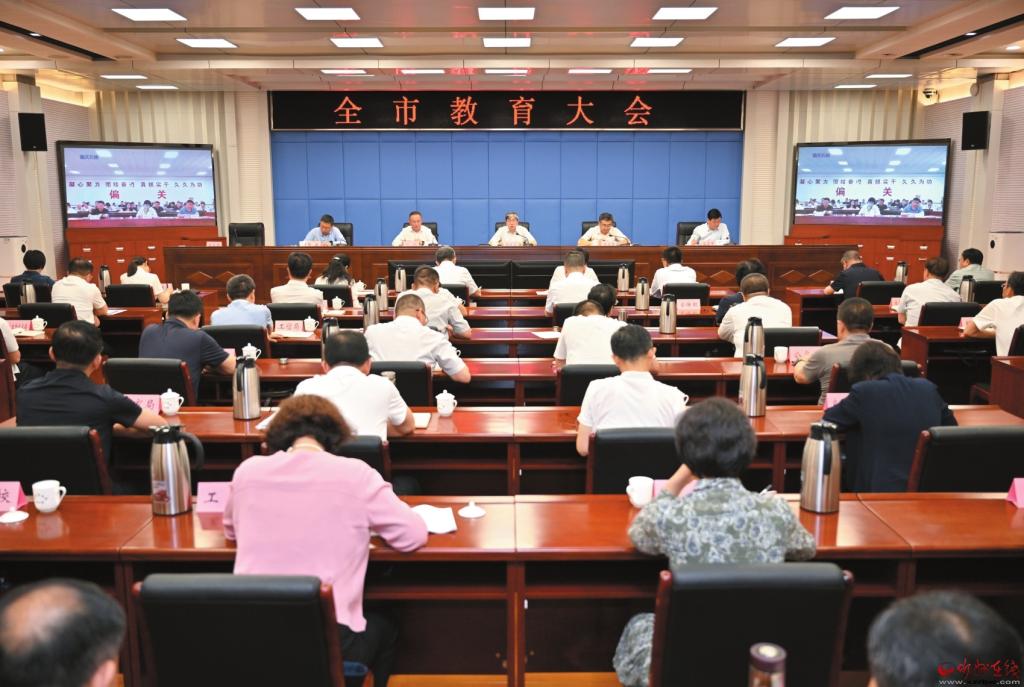 會議充分肯定近年來全市教育事業(yè)發(fā)展取得的成績,對教育強市建設各項重點工作作出全面部署。會議指出,要堅持不懈用習近平新時代中國特色社會主義思想鑄魂育人,一體化推進大中小學思想政治教育,培養(yǎng)德智體美勞全面發(fā)展的社會主義建設者和接班人。要堅持以人民為中心發(fā)展教育,推動義務教育優(yōu)質(zhì)均衡發(fā)展,促進學前教育普及普惠和高中階段學校多樣化發(fā)展,前瞻性優(yōu)化區(qū)域教育資源配置,持續(xù)鞏固“雙減”成果,不斷提升基礎教育服務質(zhì)量。要統(tǒng)籌實施科教興市、人才強市、創(chuàng)新驅(qū)動發(fā)展戰(zhàn)略,加快構建現(xiàn)代職業(yè)教育體系,增強高等教育綜合實力,培育壯大科技創(chuàng)新力量,不斷塑造高質(zhì)量發(fā)展新動能新優(yōu)勢。要強化師德師風建設,優(yōu)化完善教師管理體制,厚植尊師重教社會風尚,大力培養(yǎng)鍛造一支師德高尚、業(yè)務精湛、結(jié)構合理、充滿活力的高素質(zhì)專業(yè)化教師隊伍。要進一步深化教育領域綜合改革,進一步擴大教育開放合作交流,進一步建設全民終身學習的學習型社會,充分激發(fā)教育高質(zhì)量發(fā)展的生機活力。