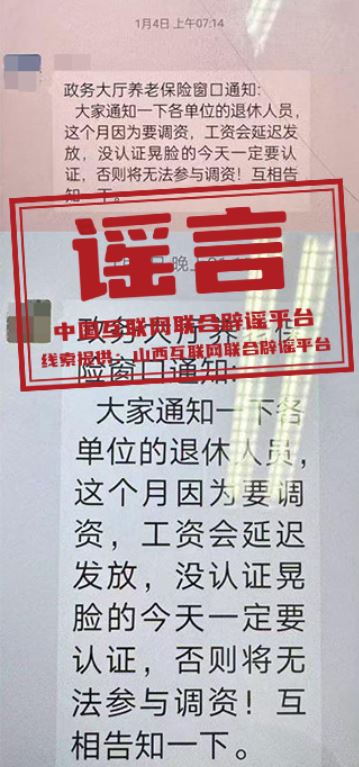 謠言:山西大同“退休人員今天一定要認(rèn)證,否則將無(wú)法參與調(diào)資”?