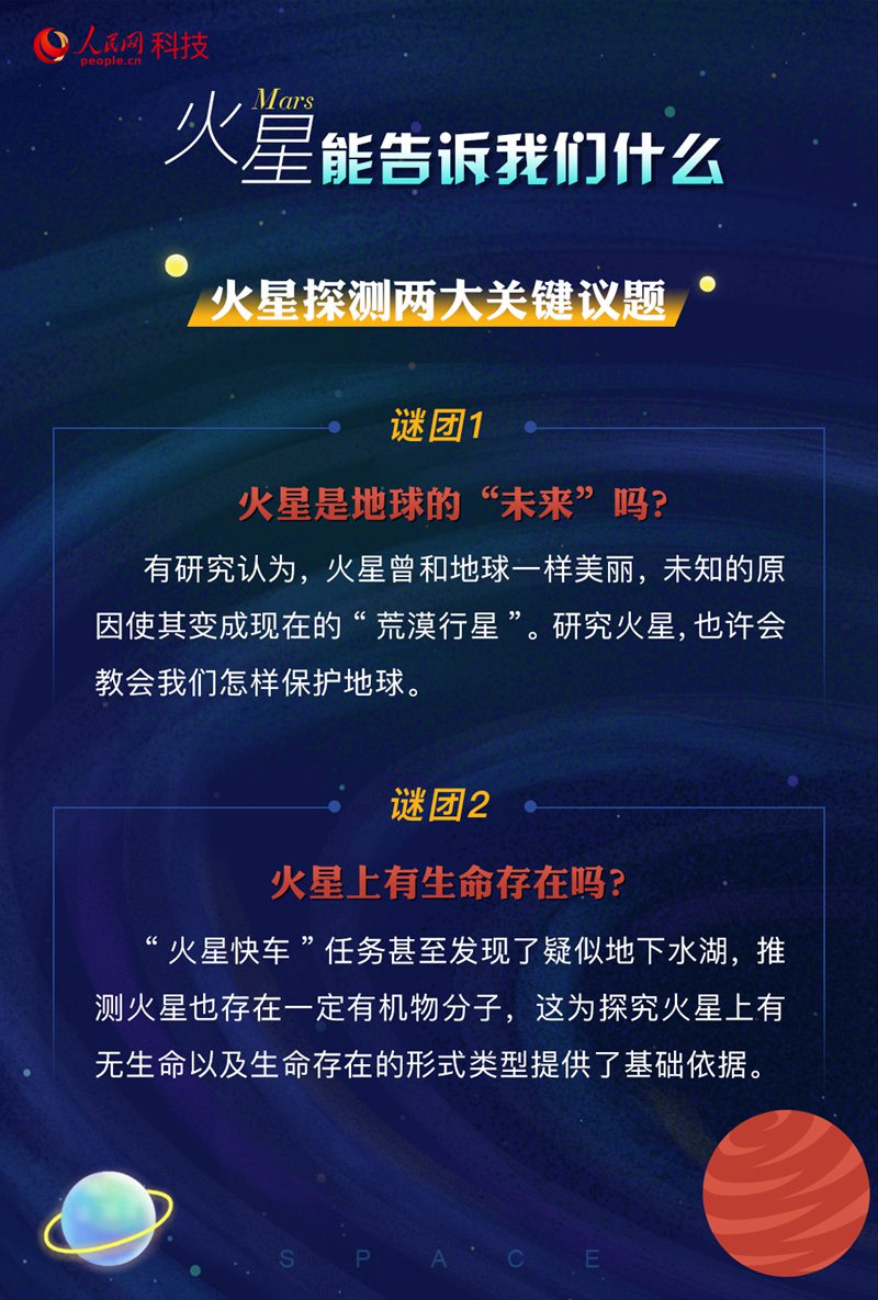 是什么原因?qū)е禄鹦鞘チ怂??它怎樣從一個藍色星球變成現(xiàn)在一片荒漠的紅色星球?其大氣、環(huán)境是如何演化的?火星的今天有沒有可能就是地球的明天?這些都是科學(xué)家們想要通過相關(guān)探測去解答的問題。