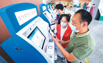 居民在浙江省湖州市吳興區(qū)人民醫(yī)院使用智慧醫(yī)療多功能自助機支付醫(yī)藥費。新華社記者 徐 昱攝