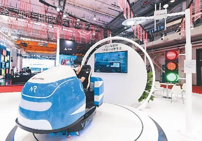 參觀者在2021世界5G大會(huì)展覽現(xiàn)場(chǎng)體驗(yàn)5G+車聯(lián)網(wǎng)VR虛擬駕駛。新華社記者 任超 攝
