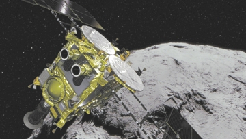 日本宇宙航空研究開發(fā)機構(gòu)的小行星探測器“隼鳥2號”接近其目標小行星“龍宮”。圖片來源:日本宇宙航空研究開發(fā)機構(gòu)