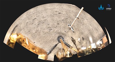 嫦娥五號(hào)探測器在月球表面展示國旗。新華社發(fā)