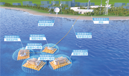 沉入海底的數(shù)據(jù)艙并非就此成為“孤島”,它與岸站、水下分電站和海底光電復合纜共同組成了海底數(shù)據(jù)中心。海底光電復合纜聯(lián)通其余3部分,將電力和網(wǎng)絡分配到每一個獨立的海底數(shù)據(jù)艙。