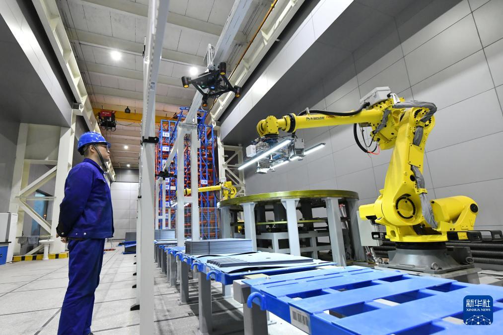 2月22日,在哈電集團(tuán)哈爾濱電機(jī)廠有限責(zé)任公司汽輪發(fā)電智能疊片間,工作人員在觀察智能設(shè)備運(yùn)行情況。新華社記者 王建威 攝