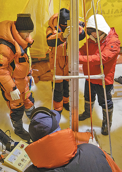 科考隊員在打鉆。