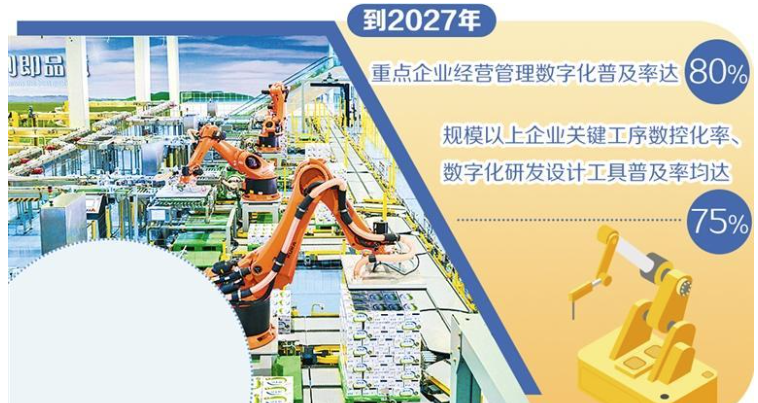 工業(yè)和信息化部等7部門日前印發(fā)《食品工業(yè)數(shù)字化轉(zhuǎn)型實(shí)施方案》(以下簡(jiǎn)稱《實(shí)施方案》)提出,到2027年,重點(diǎn)企業(yè)經(jīng)營(yíng)管理數(shù)字化普及率達(dá)80%,規(guī)模以上企業(yè)關(guān)鍵工序數(shù)控化率、數(shù)字化研發(fā)設(shè)計(jì)工具普及率均達(dá)到75%,打造百個(gè)數(shù)字化轉(zhuǎn)型典型應(yīng)用場(chǎng)景,梯次實(shí)施千個(gè)數(shù)字化示范(試點(diǎn))項(xiàng)目。