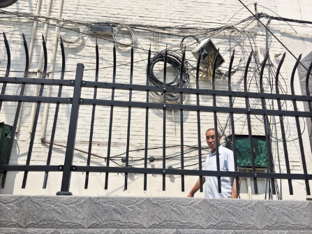 | 小區(qū)墻上布“蛛網(wǎng)” 住戶安全有隱患 |