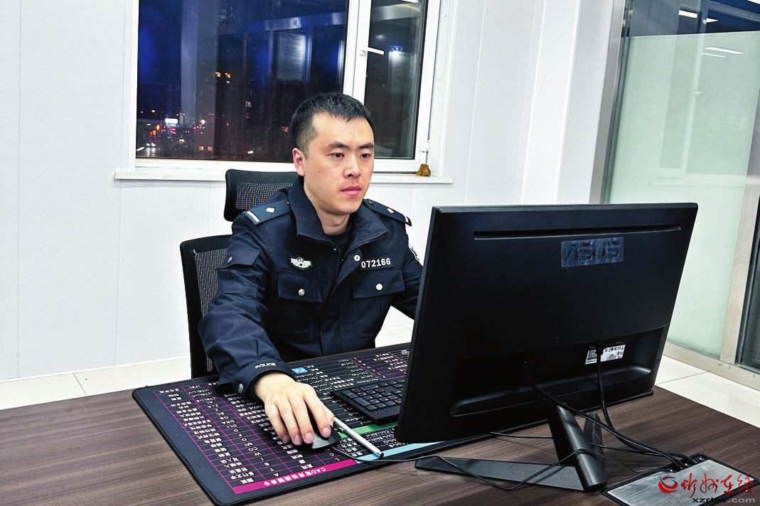 馬利君的從警生涯雖然不長,但他經(jīng)歷的艱險(xiǎn)、考驗(yàn)和面對(duì)的挑戰(zhàn)卻是很多人一生都不曾遇到的。他用不懈努力、滾石爬坡的昂揚(yáng)斗志抒寫著自己的警察故事。圖為馬利君在工作中。 (赫在榮)