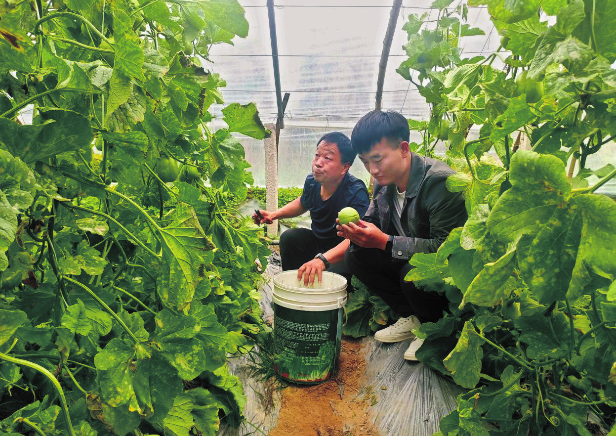 邢毅斌正在忙著采摘瓜果