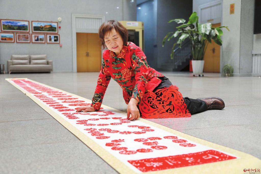在位于岢嵐縣新時(shí)代文明實(shí)踐中心的非遺工作室內(nèi),柔和的燈光下,隨著紙屑紛紛落地,又一幅剪紙作品《金蛇賀歲》在非遺傳承人韋東梅的手中誕生了?!罢?00幅了!”摘掉老花鏡,韋東梅活動(dòng)活動(dòng)手指,雖然連續(xù)工作略顯疲憊,但從她的臉上看到更多的是作為創(chuàng)作者的滿足。