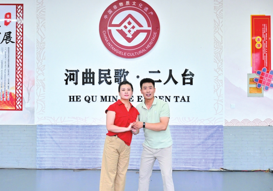 走進(jìn)河曲縣白樸公園,一段清亮婉轉(zhuǎn)的唱腔便隨風(fēng)入耳——河曲縣民歌二人臺(tái)藝術(shù)團(tuán)演員鄔光正和同事們?nèi)橥度?,打磨大型非遺音樂劇《大河長(zhǎng)歌》。他額角滲著細(xì)密的汗珠,當(dāng)唱到“好兒女今日唱長(zhǎng)歌,勝過了前輩了不得”時(shí),突然停了下來,對(duì)搭檔說:“再來一遍,剛才那口氣沒頂滿?!边@份對(duì)細(xì)節(jié)的較真,藏著他對(duì)二人臺(tái)藝術(shù)最樸素也最深厚的敬畏。