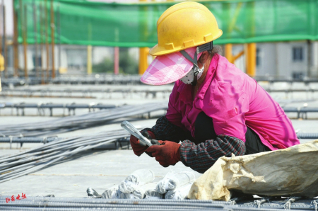 當(dāng)日,是入伏第一天,意味著開始進(jìn)入一年中最熱的時候。在熱火朝天的施工現(xiàn)場,工人師傅們埋頭苦干,他們雖然戴著自制遮陽帽、冰袖,身旁放著水壺,但一小會兒工夫就會汗流浹背?!斑@樣的杯子,我每天要喝好幾杯水?!碧鞖馓珶幔瑏碜运拇飞降牧钟驯永锏乃伙嫸M。黝黑的皮膚、如雨的汗水、潮濕的后背……當(dāng)大多數(shù)人避暑納涼時,不少勞動者卻辛勤地?fù)]灑著汗水,堅守在施工一線。在這個工地上,有很多和林英一樣的打工人,他們來自全國各地,用青春和汗水建設(shè)美麗山西。