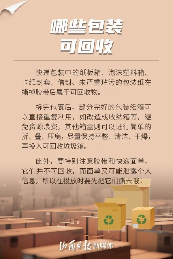 痛快拆箱的同時,眾多的快件包裹也帶來了海量的包裝垃圾,在丟棄時如果只是簡單的一扔了之,不免會給環(huán)境帶來負擔。