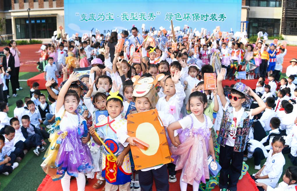 2023年9月,悅?cè)菪W(xué)舉辦環(huán)保時(shí)裝秀活動(dòng)。新華社發(fā)