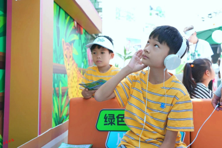 “有啄木鳥、有青蛙,剩下的我聽不出來……”在“萬物有聲”游戲環(huán)節(jié),小朋友認(rèn)真地和環(huán)保志愿者說。在這個環(huán)節(jié),參與者佩戴耳機(jī)后,可以根據(jù)聽到的聲音猜動物的名稱。各種動物的聲音,著實吸引了不少小朋友的參與,有的小朋友還模仿發(fā)出聲音的動物形象,惟妙惟肖,讓現(xiàn)場不少人笑出聲來。