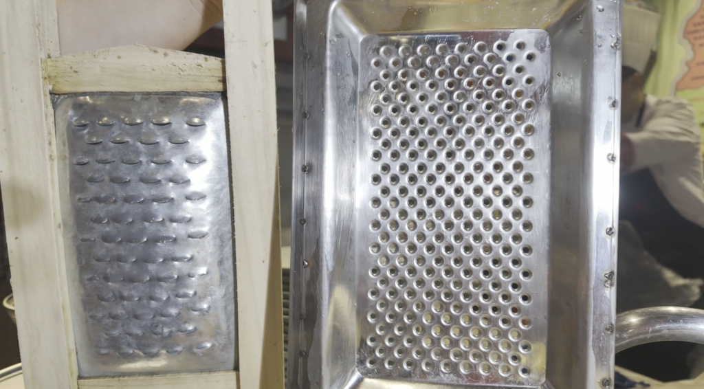 山西人家中大多都有不止一種做面的工具。擦床、抿床、饸饹床、削面用的刀片、甚至普通的剪刀、筷子,都是可用來做面的工具,每一種工具在大廚們的手中都可以被“玩”出多種花樣。用擦床來做紅面擦尖、“炒撥爛子”,用抿床來做豆面抿尖、抿八股,用剪刀剪成“剪刀面”,用筷子剔出“剔尖”、戳出“酒窩面”。