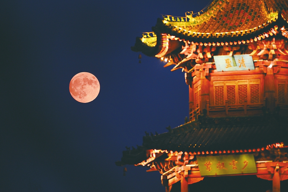 9月17日傍晚,太原迎澤公園,一輪巨大的圓月映襯著仿古建筑,詩意滿滿。當(dāng)日是中秋佳節(jié),恰好邂逅本年度最大的“超級月亮”。所謂“超級月亮”,其實(shí)是指月球在近地點(diǎn)附近時,恰好是滿月的時候,這樣一來,視覺上就會顯得格外巨大和明亮。據(jù)悉,今年的“超級月亮”平均每60年才會出現(xiàn)一次。