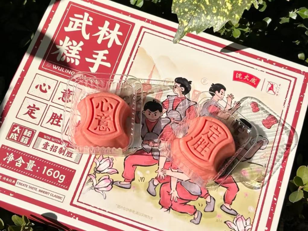 圖為沈大成和盧氏心意拳聯(lián)名推出的“武林糕手”心意定勝糕。新華社發(fā)