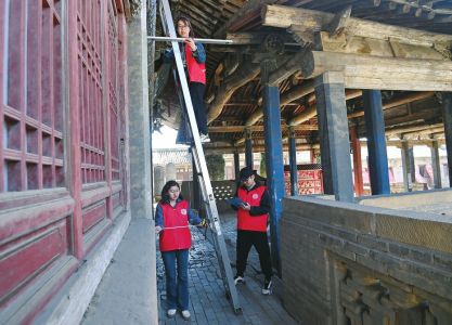 “問診”環(huán)節(jié),團隊成員現場抄錄碑刻、實地走訪文物建筑所在地老者、查閱相關資料典籍求問古人,“問詢”建筑歷史沿革及修繕記錄,制定針對性修復方案。