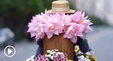 女子騎單車(chē)賣(mài)荷花 背簍里是人間美好