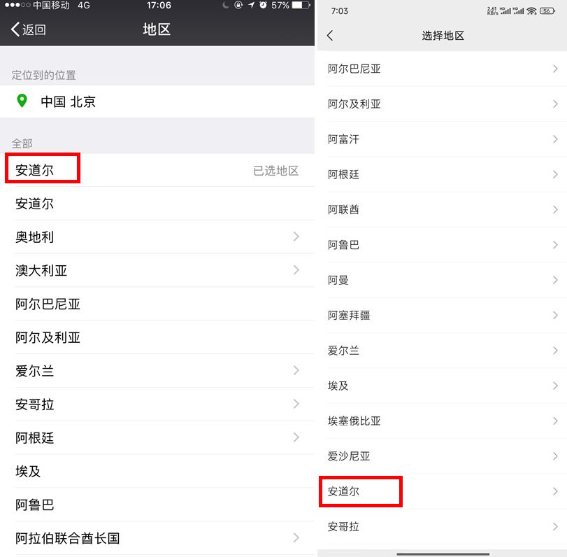 很多人在注冊(cè)微信的時(shí)候,沒(méi)在列表中翻找自己真正的所在地,微信就默認(rèn)選擇了排在第一的安道爾。