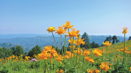毛茛科金蓮花屬多年生草本植物,有“旱地蓮”“金芙蓉”之稱。不僅具有極高觀賞價值,還可入藥。每年盛夏,駝梁等地的金蓮花連片綻放,是五臺山標志性生態(tài)景觀。