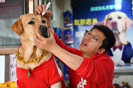 3. 為 了 讓“憨憨”在直播鏡頭里更加醒目,店主李旭戈為它畫上了一對(duì)濃眉。